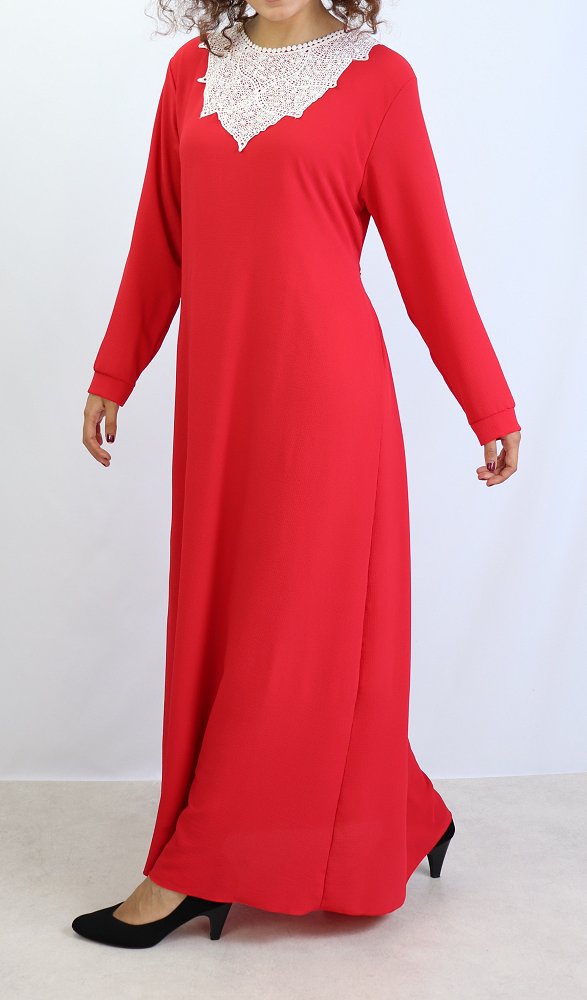 On aime cette robe chic et décontractée. Coupe droite. La broderie et les perles apportent une touche très chic. Ceinture fournie peut s'attacher devant ou derrière et permet d'accentuer la taille. Entièrement doublée (sauf les manches).