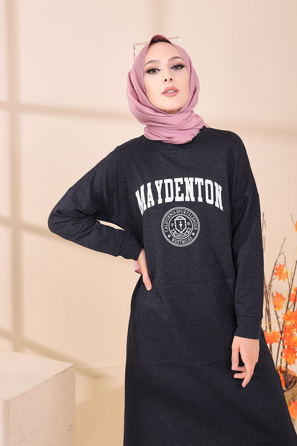 Tunique imprimée avec grandes poches style sweat-shirt.
