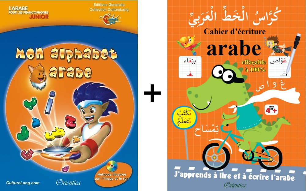 Nous avons le plaisir de vous présenter ces deux livres très pratiques, haut en couleurs et en grand format, pour les enfants qui veulent apprendre rapidement l'alphabet arabe et les premiers mots de la langue.