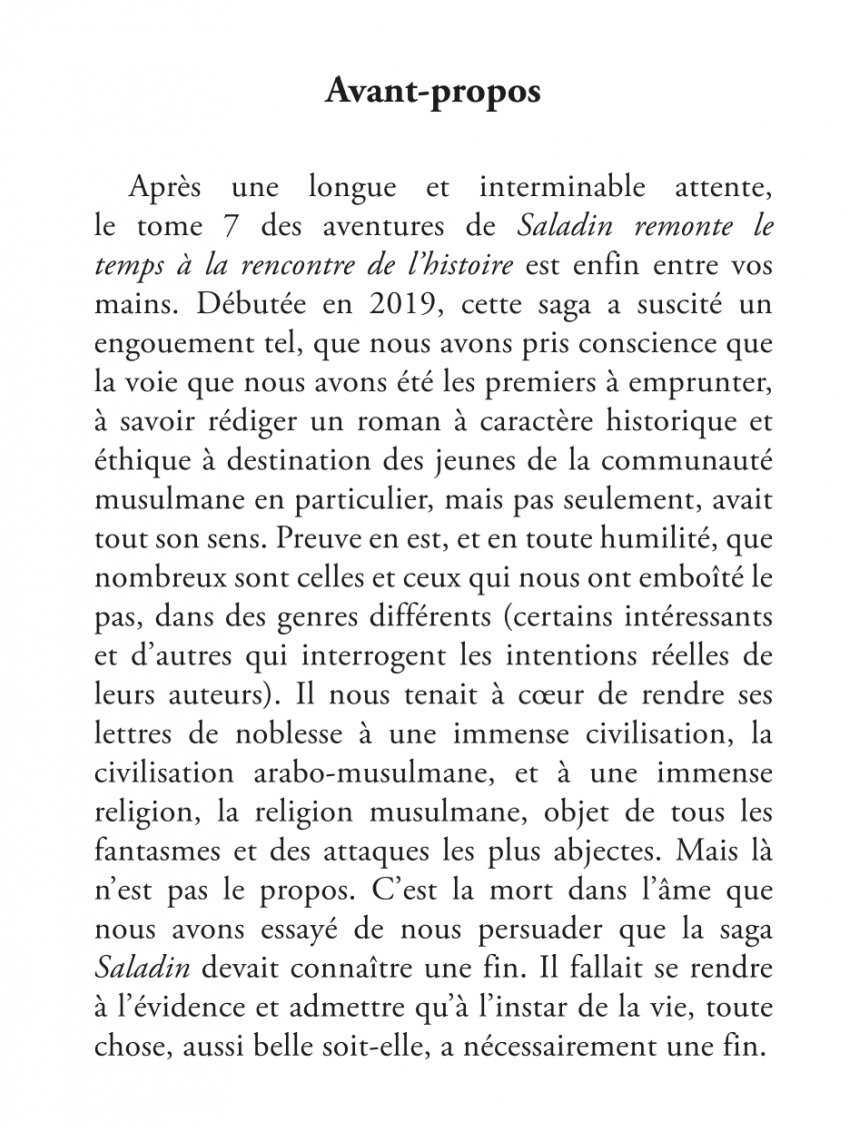 Ce dernier tome, fait de rebondissements aussi déroutants les uns que les autres, amènera le lecteur à apprécier une dernière fois la façon dont l’auteur brouille les pistes avant de révéler toute la profondeur d’un récit qui consacre non seulement la riche histoire de la présence musulmane en Sicile mais aussi et surtout le parcours initiatique auquel Saladin a été soumis tout au long de ces années avant d’être adoubé par ses pairs. Récit à la fois riche et tumultueux, Saladin aura une énième fois maille à partir avec Madame Vincent, son ex-enseignante d’histoire qui, décidément, tentera toujours de lui causer de sérieux tracas.