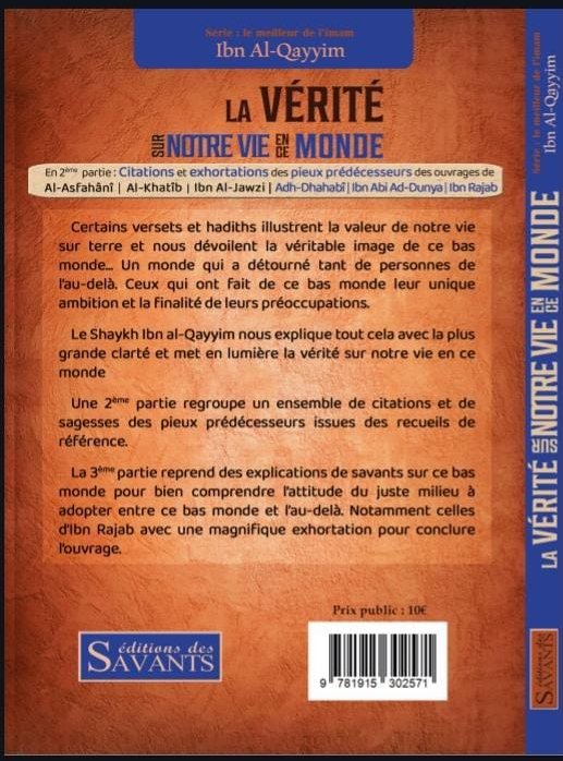 Le Shaykh Ibn al-Qayyim nous explique tout cela avec la plus grande clarté et met en lumière la vérité sur notre vie en ce monde.
