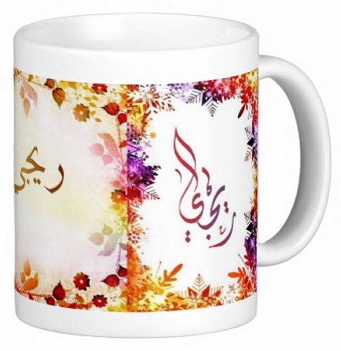 Voir l'ensemble des mugs dédiés au prénoms calligraphiés en arabe (Mugs prénoms arabes - Mugs prénoms français féminins)