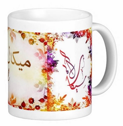 Voir l'ensemble des mugs dédiés au prénoms calligraphiés en arabe (Mugs prénoms arabes - Mugs prénoms français féminins)