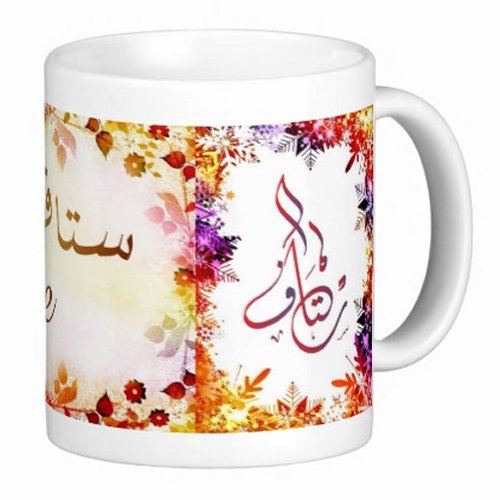 Voir l'ensemble des mugs dédiés au prénoms calligraphiés en arabe (Mugs prénoms arabes - Mugs prénoms français féminins)