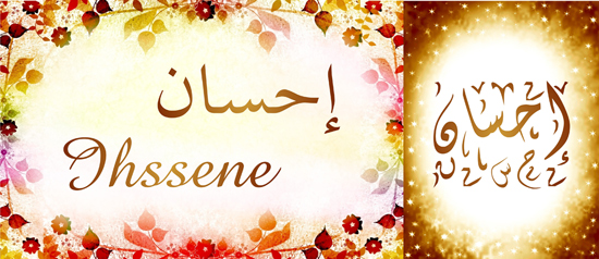Signification (sens) du prénom ’Ihsân (Ihssene) إِحْسَان: Grâce, bienfaisance, charité, faveur.