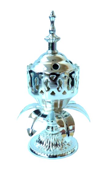 Encensoir / bruleur d'encens metallique argente avec jolies decorations