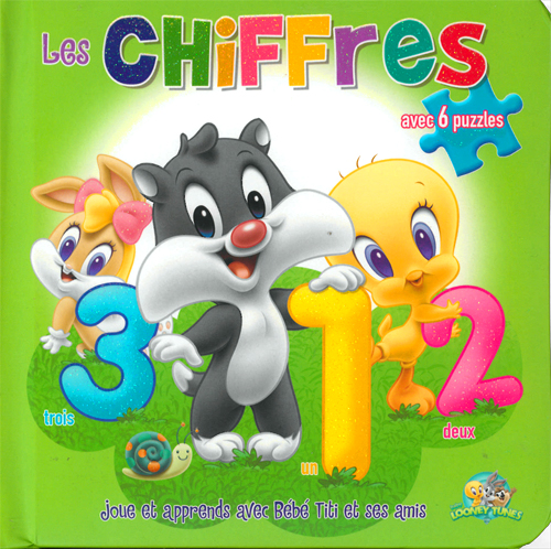 Livre pour enfant, pour apprendre les chiffres avec des illustrations colorés accompagnés de légendes et 6 puzzles (un par double page).