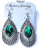Boucles d'oreilles pendantes en métal argenté ciselé serties de pierres vert