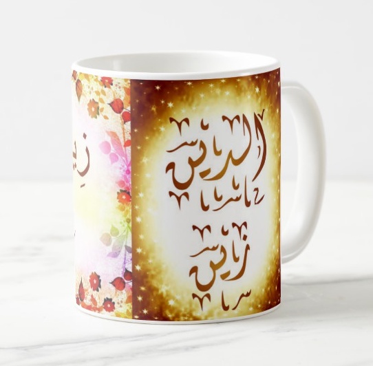 Voir l'ensemble des mugs dédiés au prénoms calligraphiés en arabe (Mugs prénoms arabes et musulmans féminins - Mugs prénoms français)