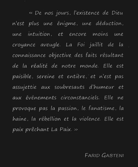 Les musulmans sont les premières victimes de leurs pratiques . " (Farid Gabteni) Ce traité scientifique, élargi à l'ensemble des Lectures du Coran, est un chef-d'oeuvre unique en son genre, il constitue une argumentation rigoureuse et irréfutable contre l'obscurantisme. De même il restitue, aux musulmans comme aux non-musulmans, le Message originel de l'Islam.