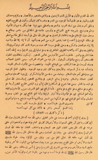 يجمع أحسن الأخبار من نفائس الدهور في ابتاريخ والسيرة ويشتمل على فوائد وغرائب والعجائب والوقائع الحميدة، مع مختصر من المسائل المفيدة من ذكر السماوات والأرض وما كان قبل الوجود وبدأ خلق آدم عليه السلام وما جاء من نسله من الأنبياء الكرام إلى نبينا محمد عليه الصلاة والسلام.