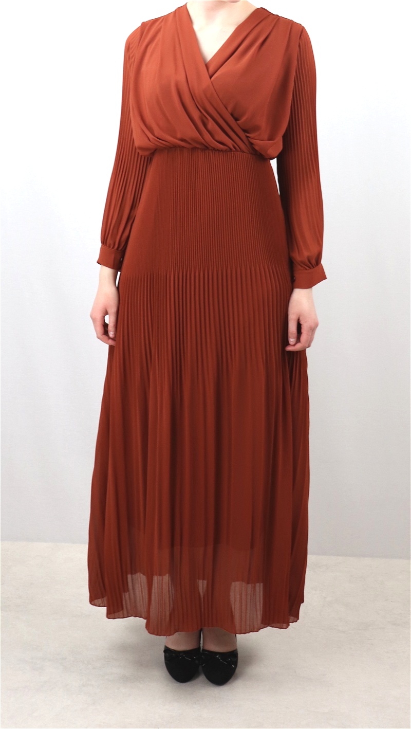 Robe longue cache-coeur plissée avec doublure - Couleur marron rouille Vetement & Accessoire