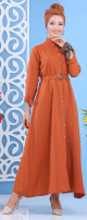 Robe longue boutonné avec ceinture - Tenue de ville pour femme - Couleur Rouille - REF. 30278 (29.90 €) - En Promotion à 23.00 €