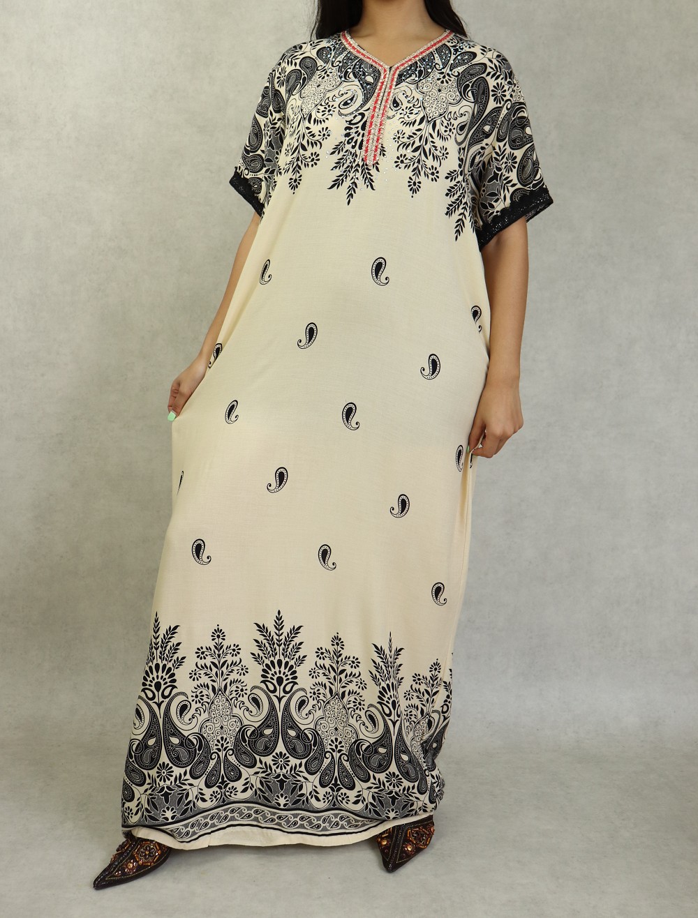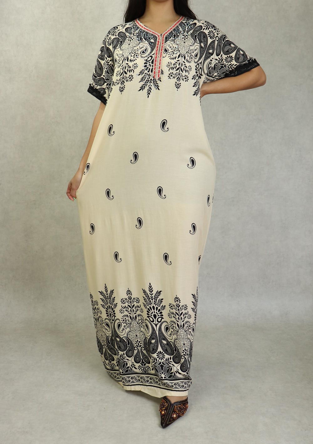 Ces motifs style cachemire sur le haut et le bas ainsi que sa broderie au niveau du col en font un modèle original et agréable à porter au quotidien avec sa matière 100% coton.