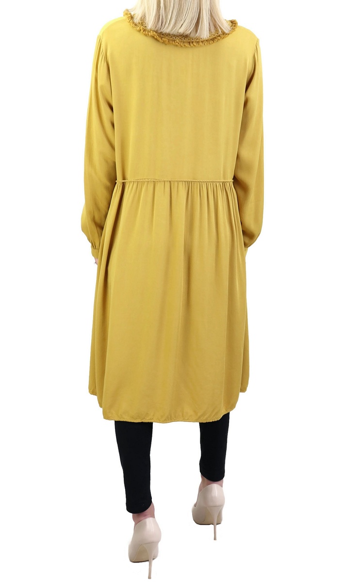 Tunique longue, col brodé ceinture assortie avec passants, tissu doux et agréable, coupe évasée. Ce modèle est parfait pour la mi-saison, il fera son effet avec son style bohème. La ceinture peut s'attacher par devant ou derrière...