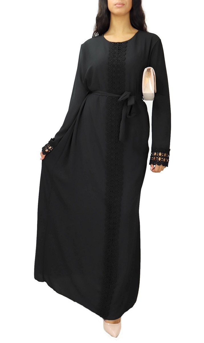 Optez pour cette robe longue, légère et fluide, effet crêpe, col rond, entièrement doublée, manches longues, le tout accompagné d'une ceinture à nouer sous passants à la taille. Dentelles sur toute la longueur et en bas des manches. Cette version unie s'adapte à tous les looks, au quotidien ou en vacances. N'hésitez pas à lui associer des accessoires imprimés ou colorés.