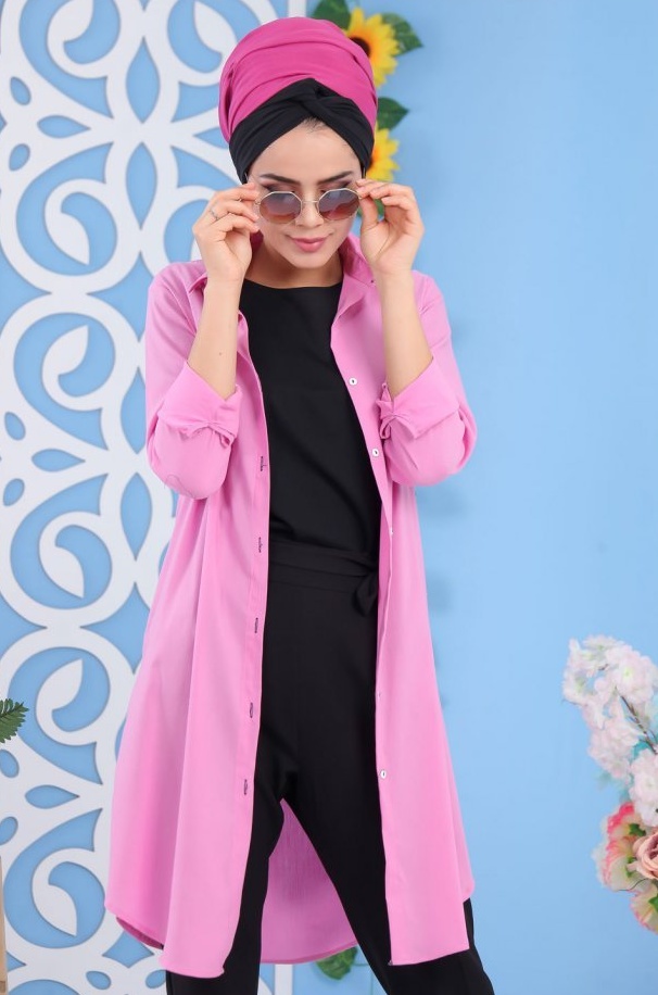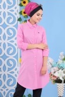 Chemise longue, col chemise, manches finition boutons aux poignets, coupe légèrement évasée, extrémités arrondies, tissu léger, fermeture boutons sur toute la longueur. Ce modèle reste un basique et indémodable qui se porte en toute saison et diverses occasions.