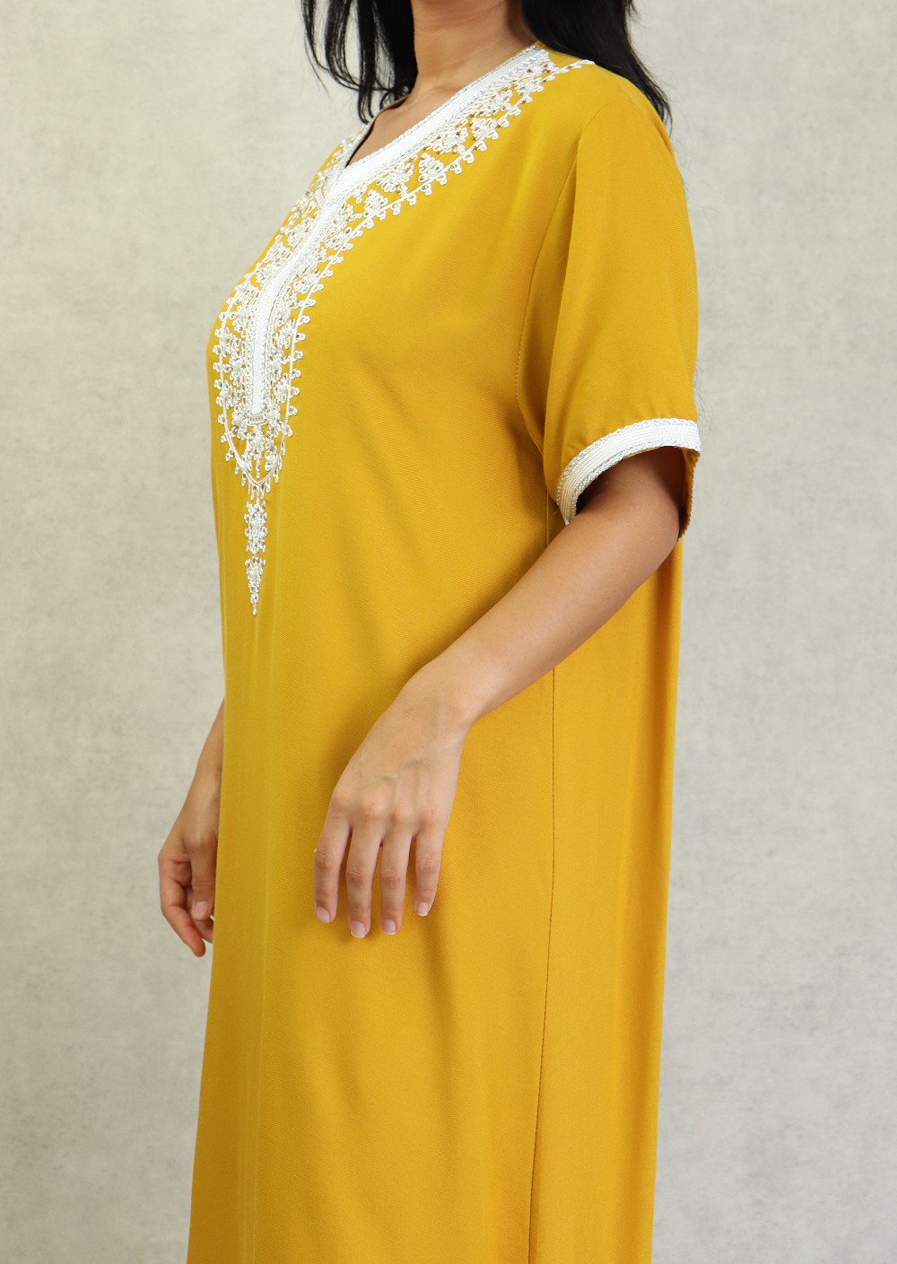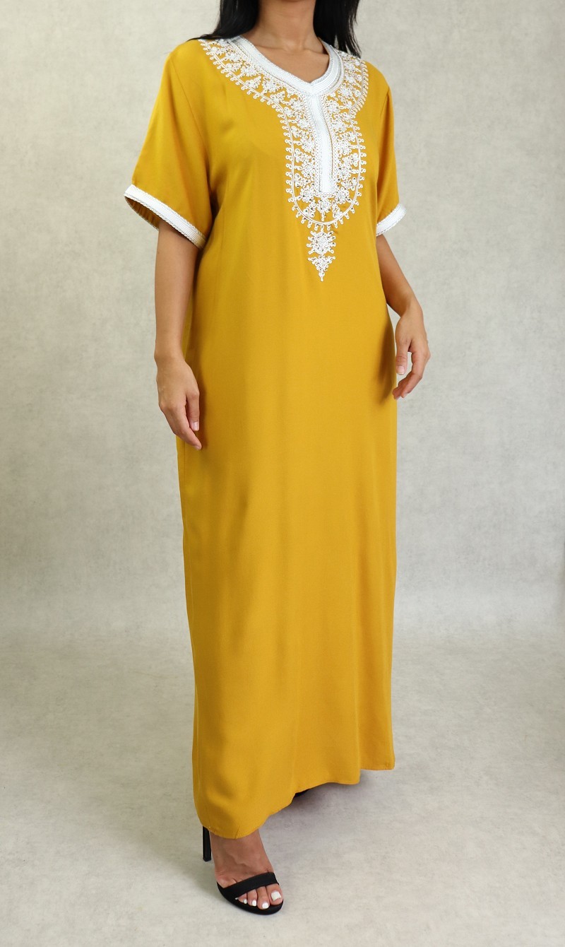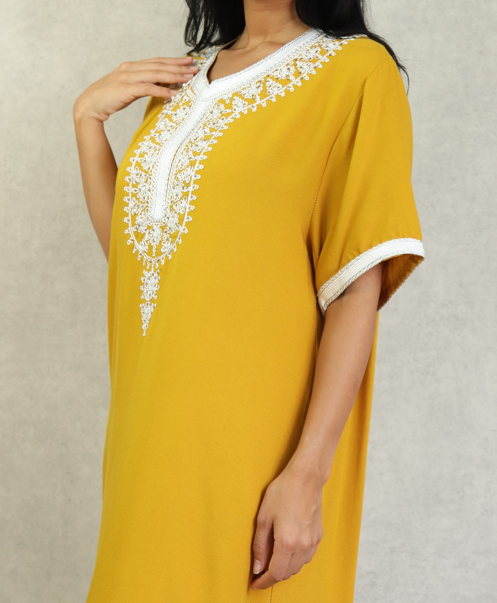 Cette robe orientale à manches courtes, encolure en cœur, tissu doux type coton et léger vous donnera une allure incroyable.