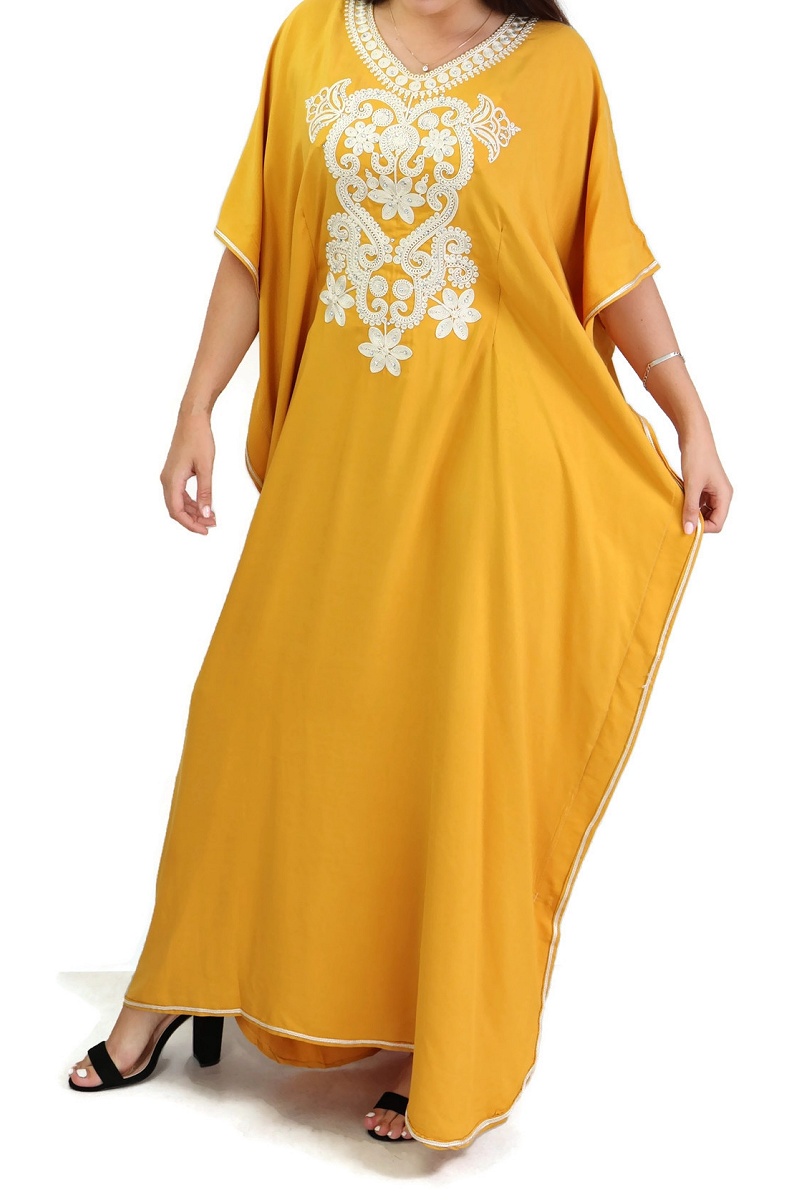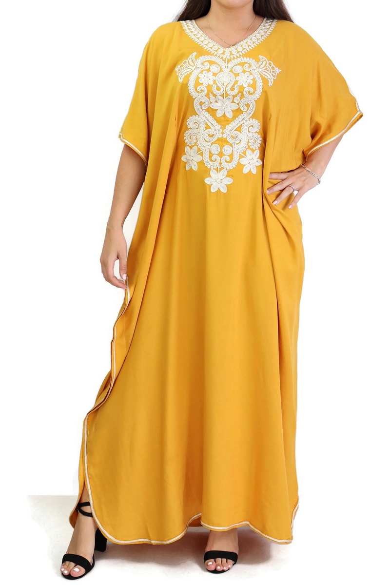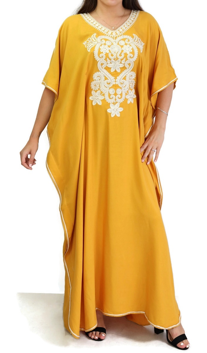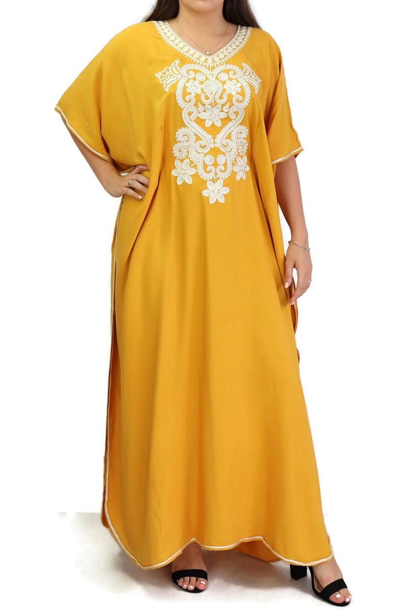 Belle gandoura traditionnelle marocaine, entièrement brodée à la main par des artisans marocains qualifiés.