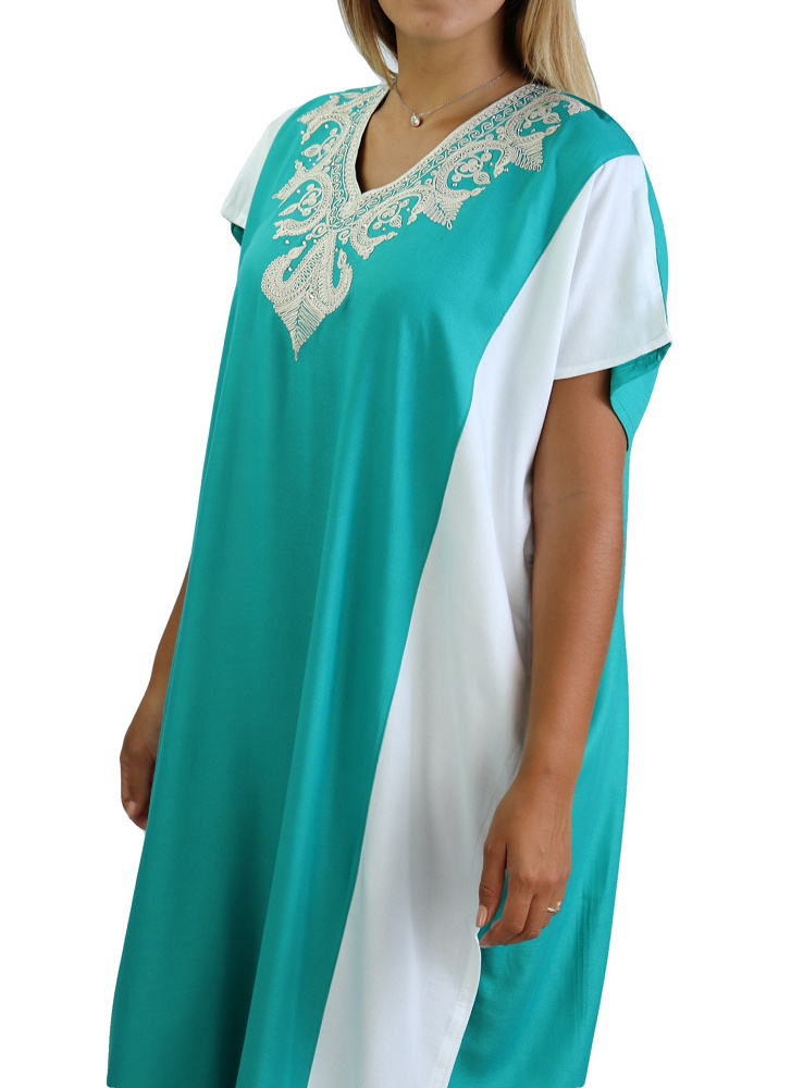 Robe marocaine très longue large bi-couleur vert et blanc avec broderies Vetement & Accessoire