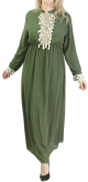 Robe longue fluide avec doublure ornée de broderies à pompons avec ceinture pour femme - Couleur kaki - REF. 30974 (29.90 €) - En Promotion à 24.90 €