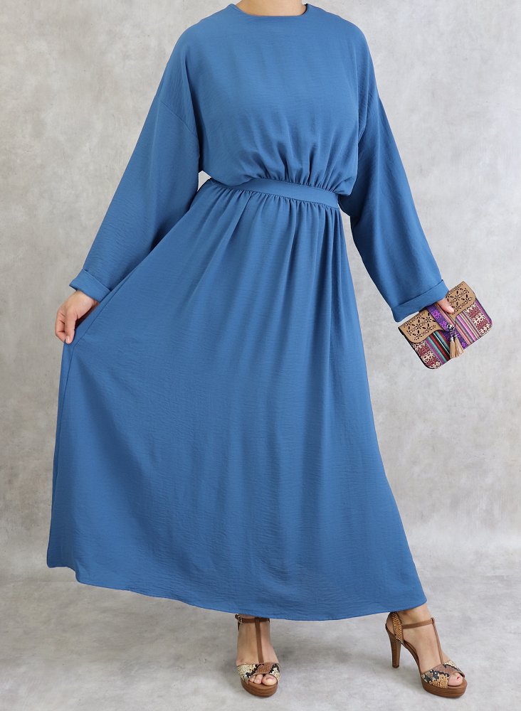 Robe classique et élégante manches plissées - Couleur Bleu acier - REF. 32439 (35.00 €)