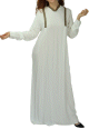 Abaya moderne blanche avec capuche et bandes noires dorées pour femme - REF. 30021 (28.00 €)