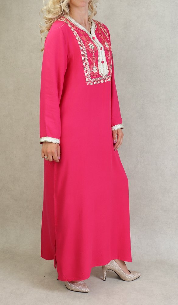 Robe orientale longue brodée manches courtes et décontractée pour femme - Couleur fuchsia - REF. 37690 (19.90 €)