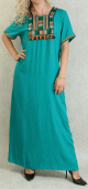Robe orientale longue manche courte avec belles broderies pour femme - Couleur Vert émeraude - REF. 33580 (25.00 €)