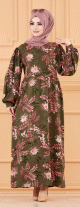 Robe fleurie ample pour femme (Vêtements hijab mastour) - Couleur kaki - REF. 36590 (29.90 €)