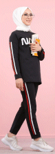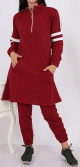 Survêtement 2 pièces composé d'un sweat mi long, capuche avec liens de serrage, coupe droite et d'un bas taille élastique. La signature de ce modèle : deux bandes larges blanches et une bande fine noire.
