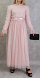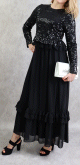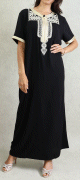 Robe orientale longue, style caftan algérien, avec broderie et strass sur toute la longueur. Le double avantage de ce modèle est d'être confortable et élégant à la fois.