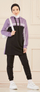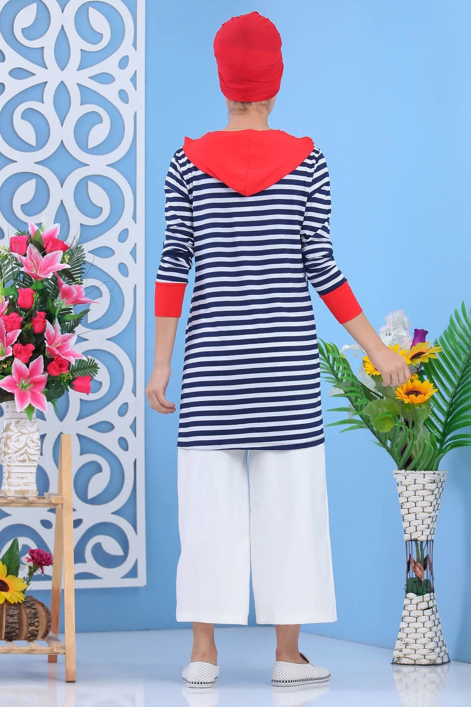 Tunique à rayures, manches longues, capuche, coupe droite, tissu léger. Ce modèle est adapté pour les 4 saisons, sa coupe décontractée vous permettra de le porter quotidiennement.