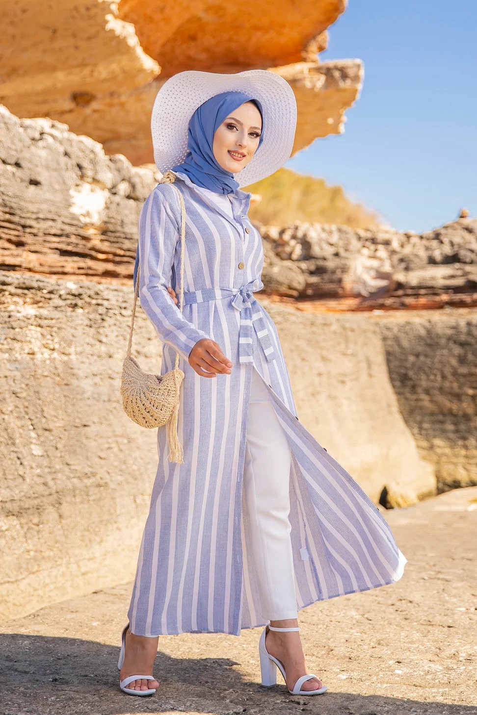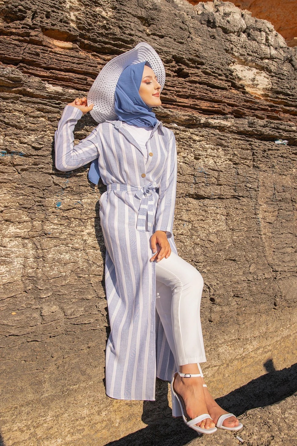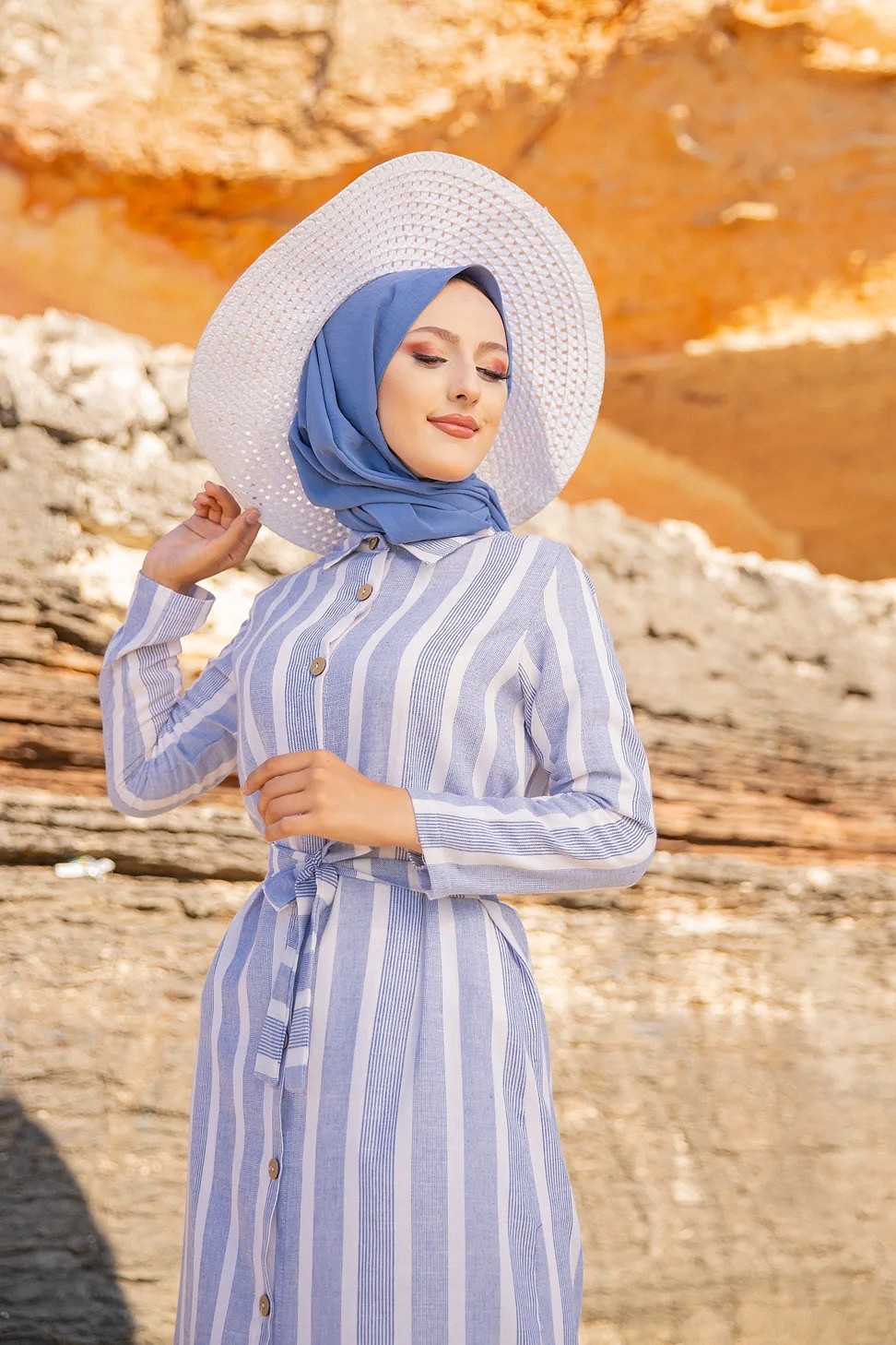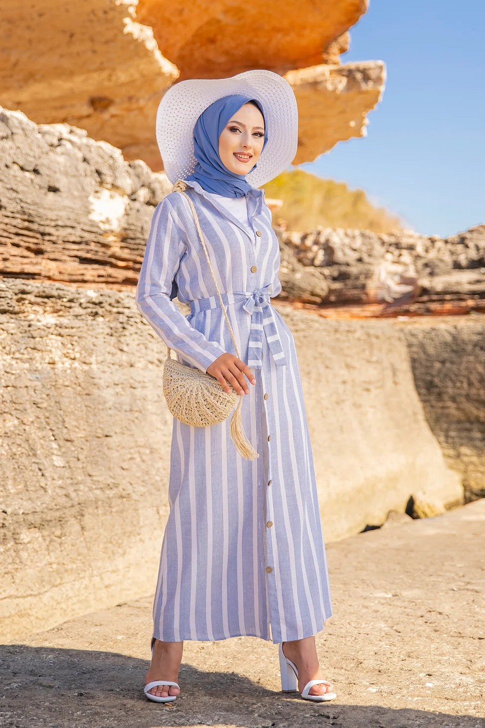 Robe chemise très longue boutonnée, coupe droit, avec un lien à nouer, col classique, manches longues, se porte avec légèreté. On aime son style chic décontracté. Tendance et flatteuse, cette version à rayures a tout pour nous plaire.