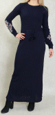 Chemise longue, fermeture boutons, manches finition élastique, lien de serrage à la base. Coupe droite, tissu doux.