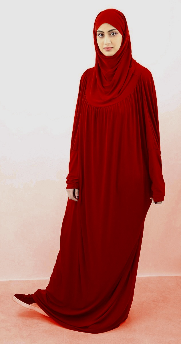 Jilbab une pièce avec bandeau intégré de taille standard large avec tissu extensible passe partout. S'enfile rapidement, tissu fluide. Ce jilbab est idéal pour faire du sport...