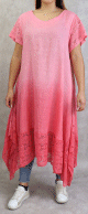 Robe d'été / Tunique longue et ample de couleur rose en dégradé (coton/lin - Grande taille pour femme) - REF. 32075 (29.90 €)