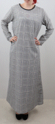 Robe longue à capuche effet plissée pour femme (Vetement moderne pour hijab - Mode Musulmane) - Couleur Gris et Blanc - REF. 33983 (28.00 €)