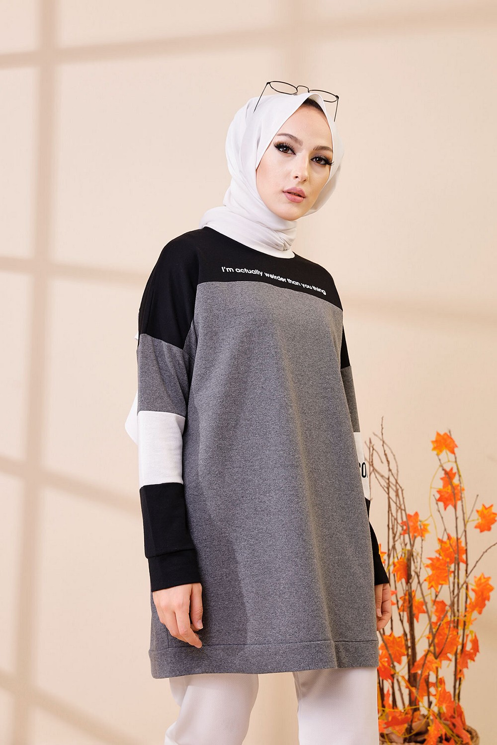 Tunique ample style decontracte et sport (Sweat Hijab moderne) - Couleur gris fonce