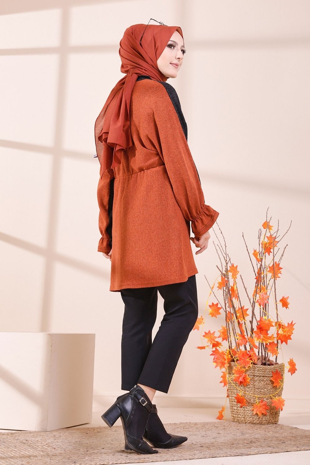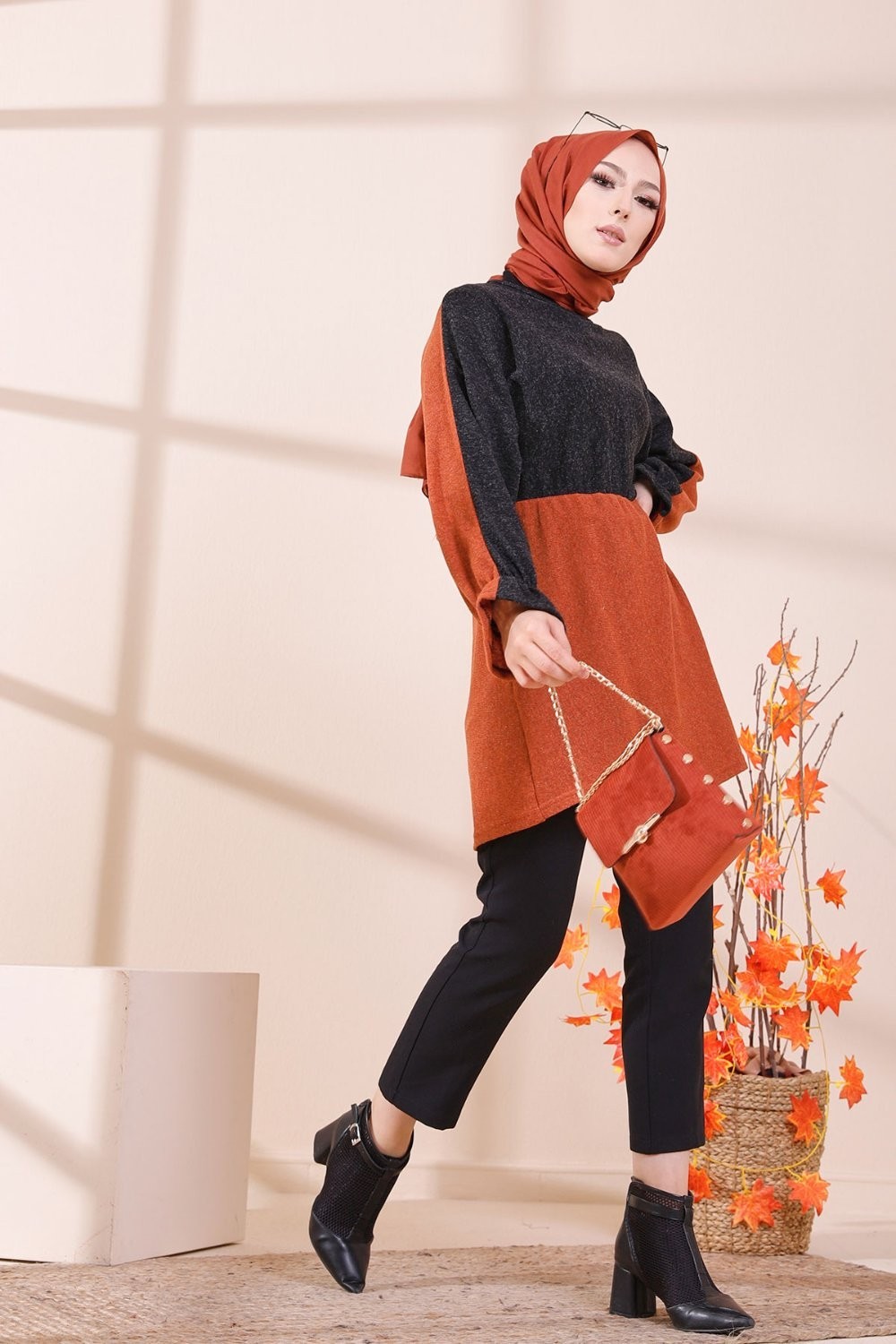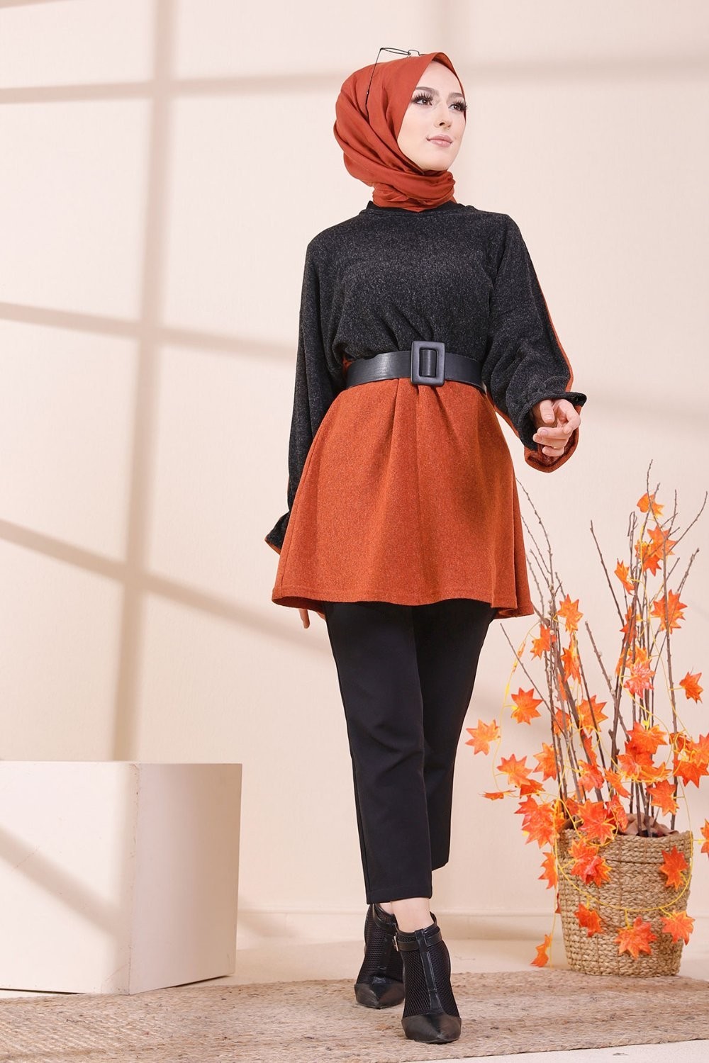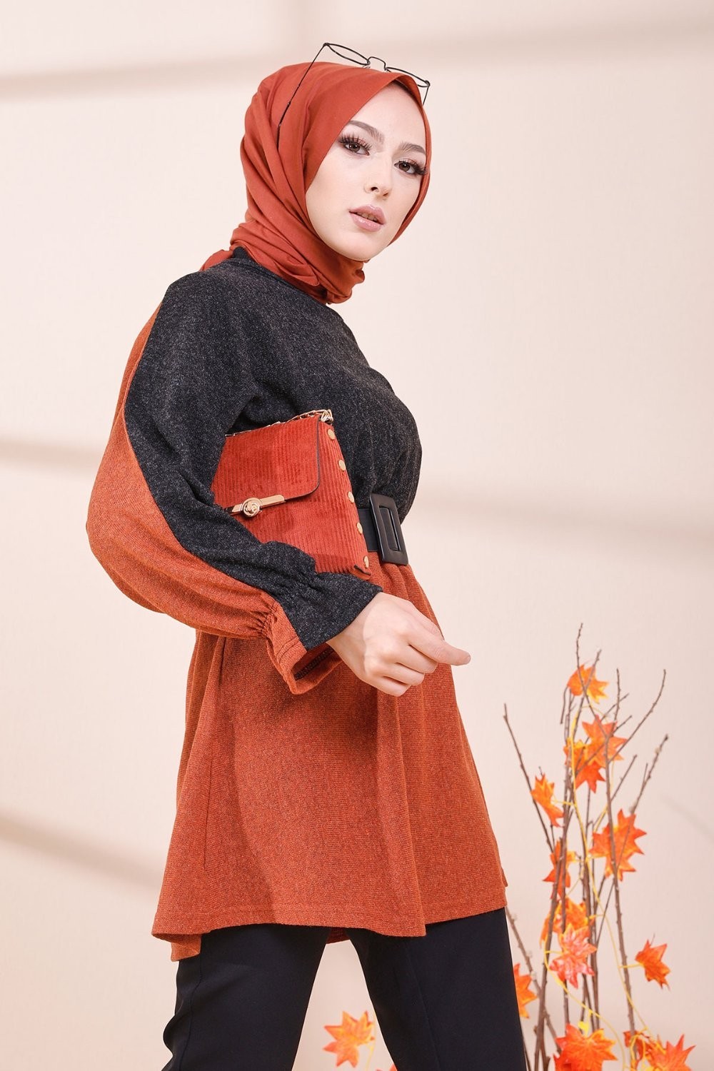 Tunique bicolore pour femme (Vêtement Hijab - Boutique en ligne Paris / France) - Couleur brique Vetement & Accessoire