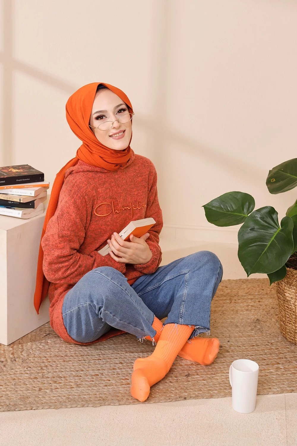 Tunique ample avec capuche (Tenue moderne et sport pour hijab) - Couleur brique - REF. 37577 (28.00 €)