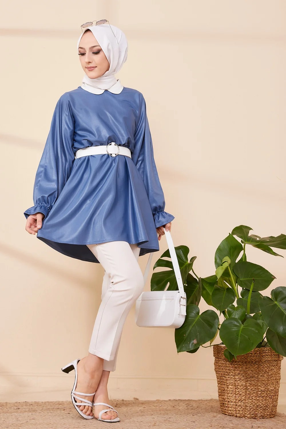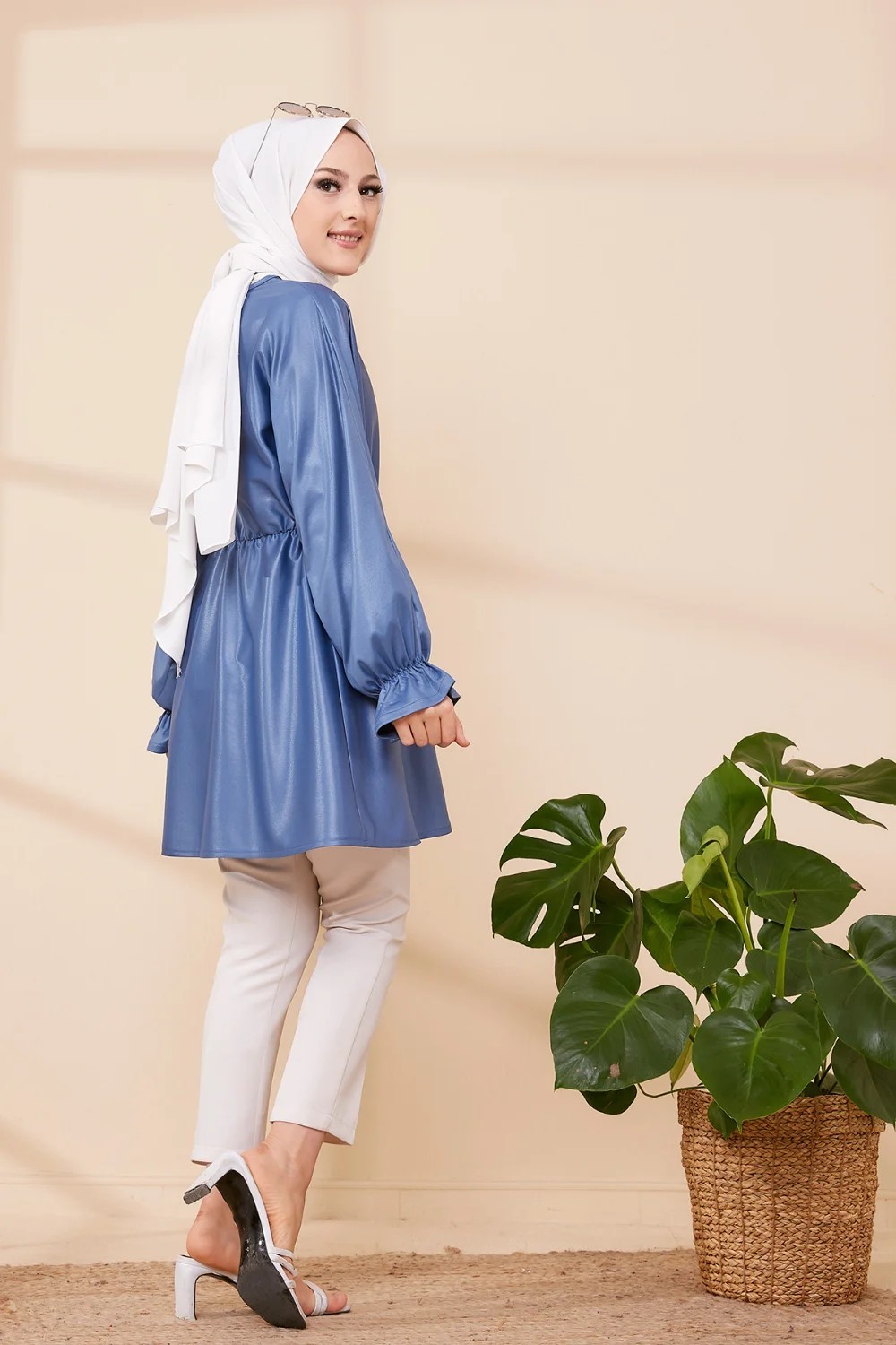 Tunique brillante avec élastique au niveau du ventre.