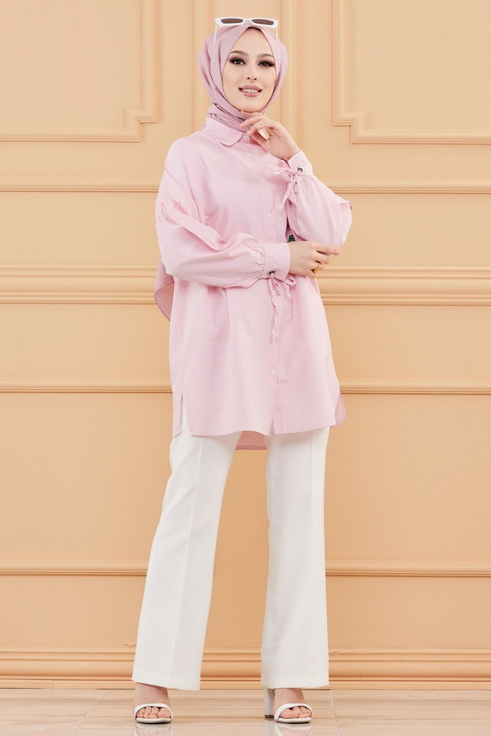 Tunique-Chemise ample boutonnée (Vetement femme voilée France) - Couleur rose clair - REF. 32220 (25.00 €) - En Promotion à 21.00 €