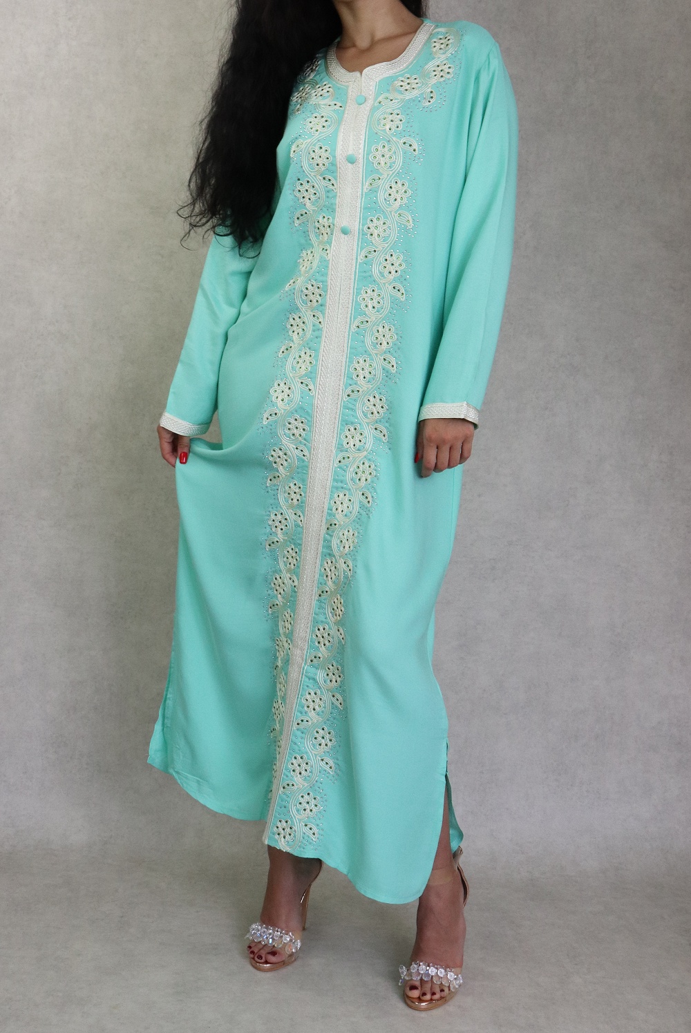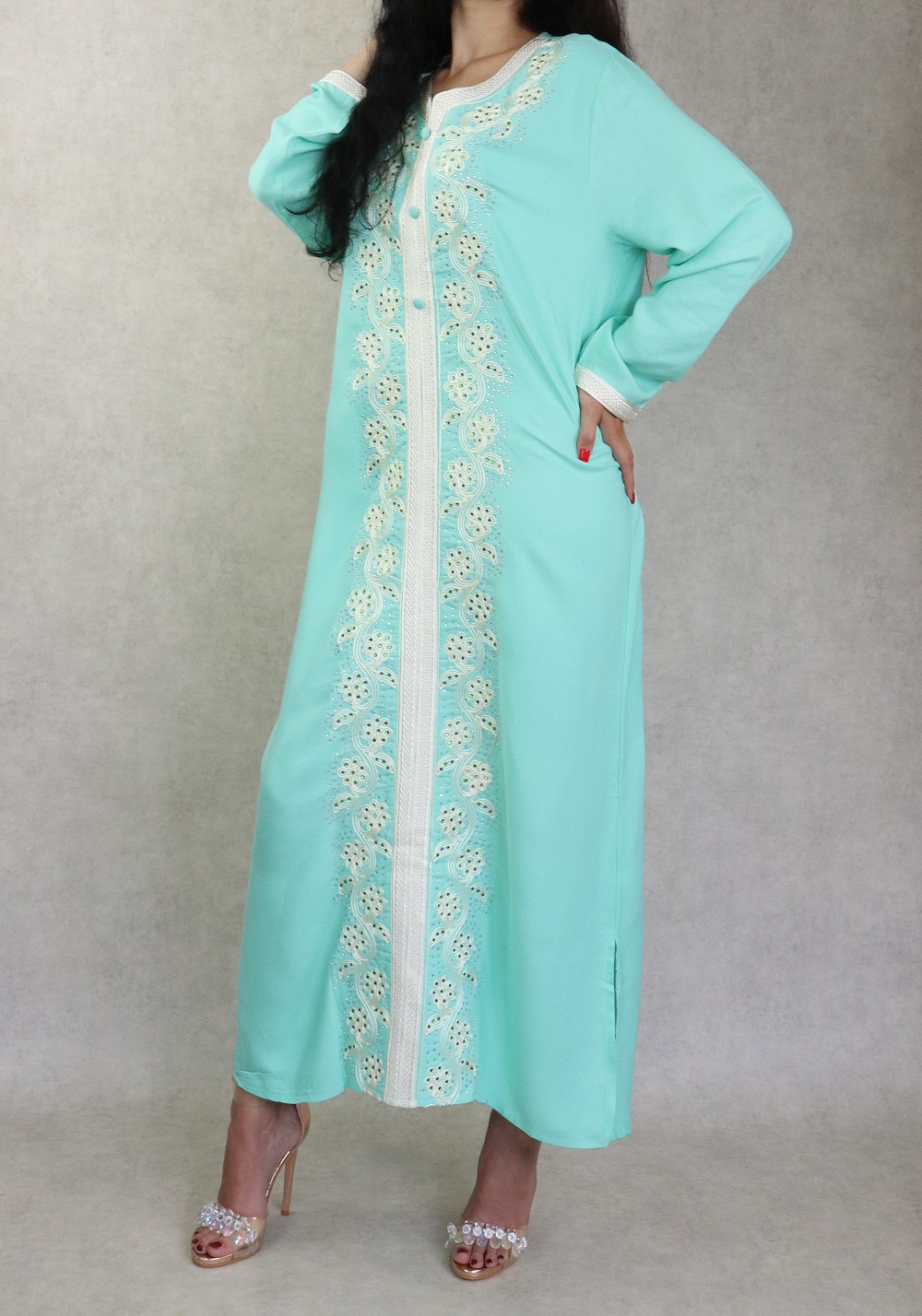 Très belle robe style oriental confectionné avec un tissu épais (non transparent), fluide et doux (majorité coton). Le double avantage de ce modèle est d'être confortable et élégant à la fois.