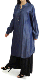 Robe tunique évasée à volants, col rond, sans manches, fermée par goutte d'eau boutonnée au dos, coupe évasée. Peut se porter de différentes façons. Elle a un petit côté frais qui nous fait craquer !