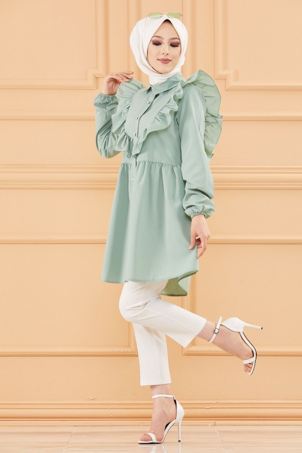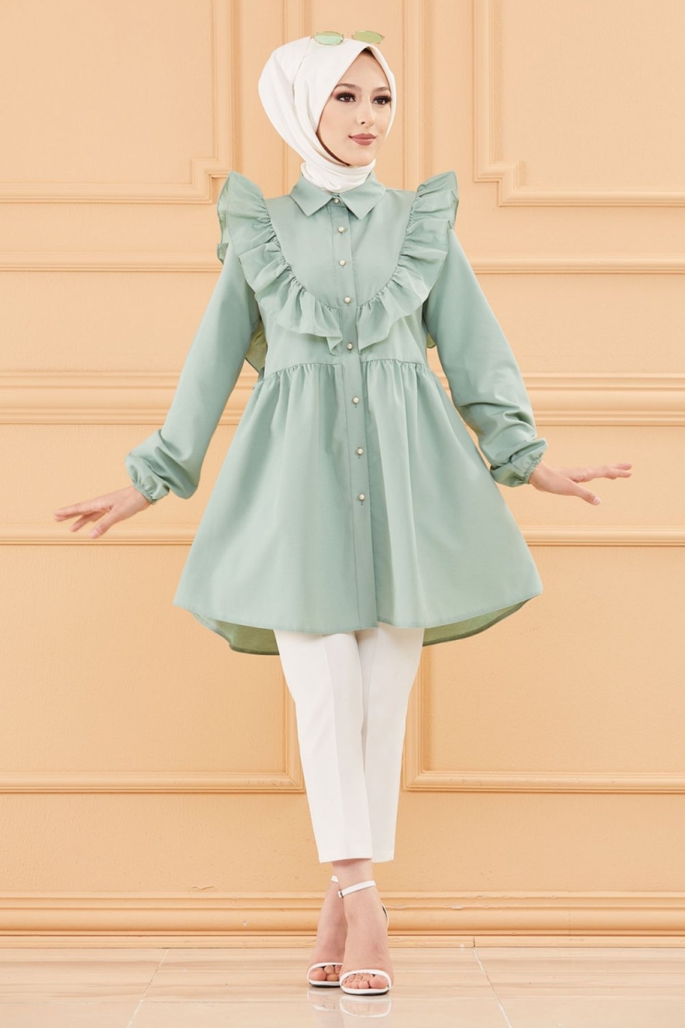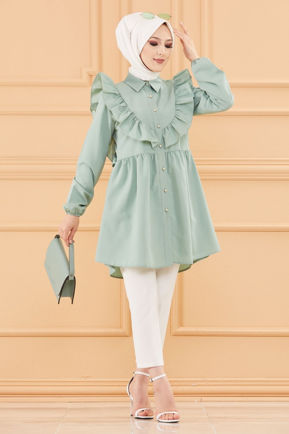 Tunique chemise habillée pour femme (Vêtements Mode Musulmane) - Couleur vert amande