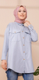 Tunique-Chemise casual pour femme avec deux grandes poches - Couleur bleu ciel - REF. 37694 (24.90 €)