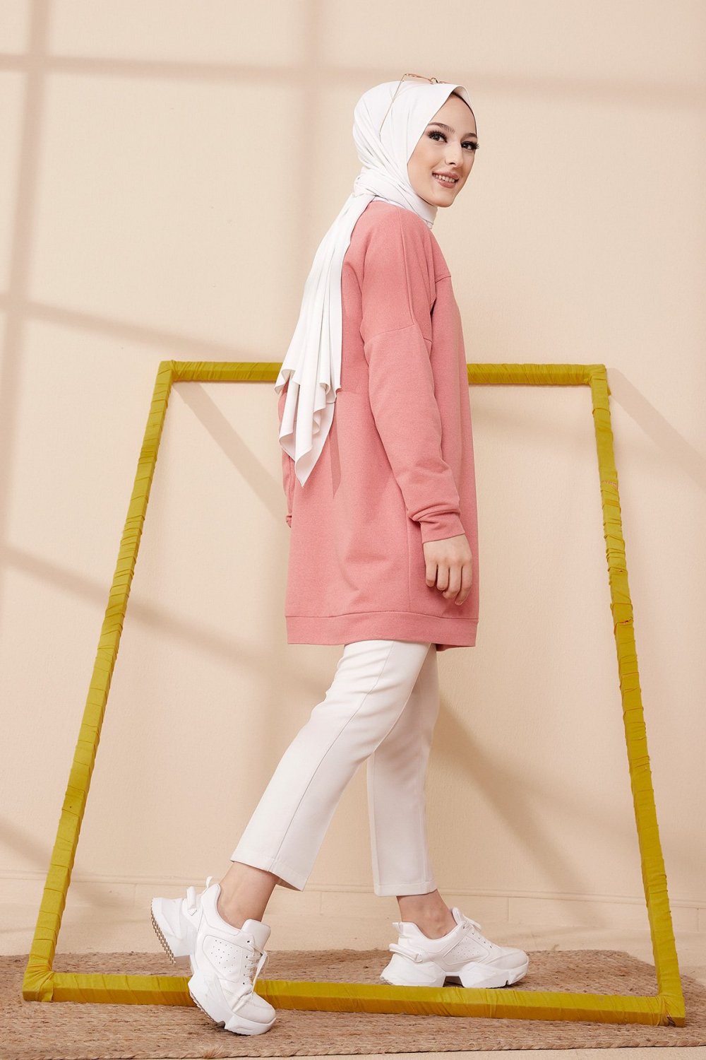 Tunique décontractée ample avec grande poche (Sweat femme Hijab) - Couleur rose Vetement & Accessoire