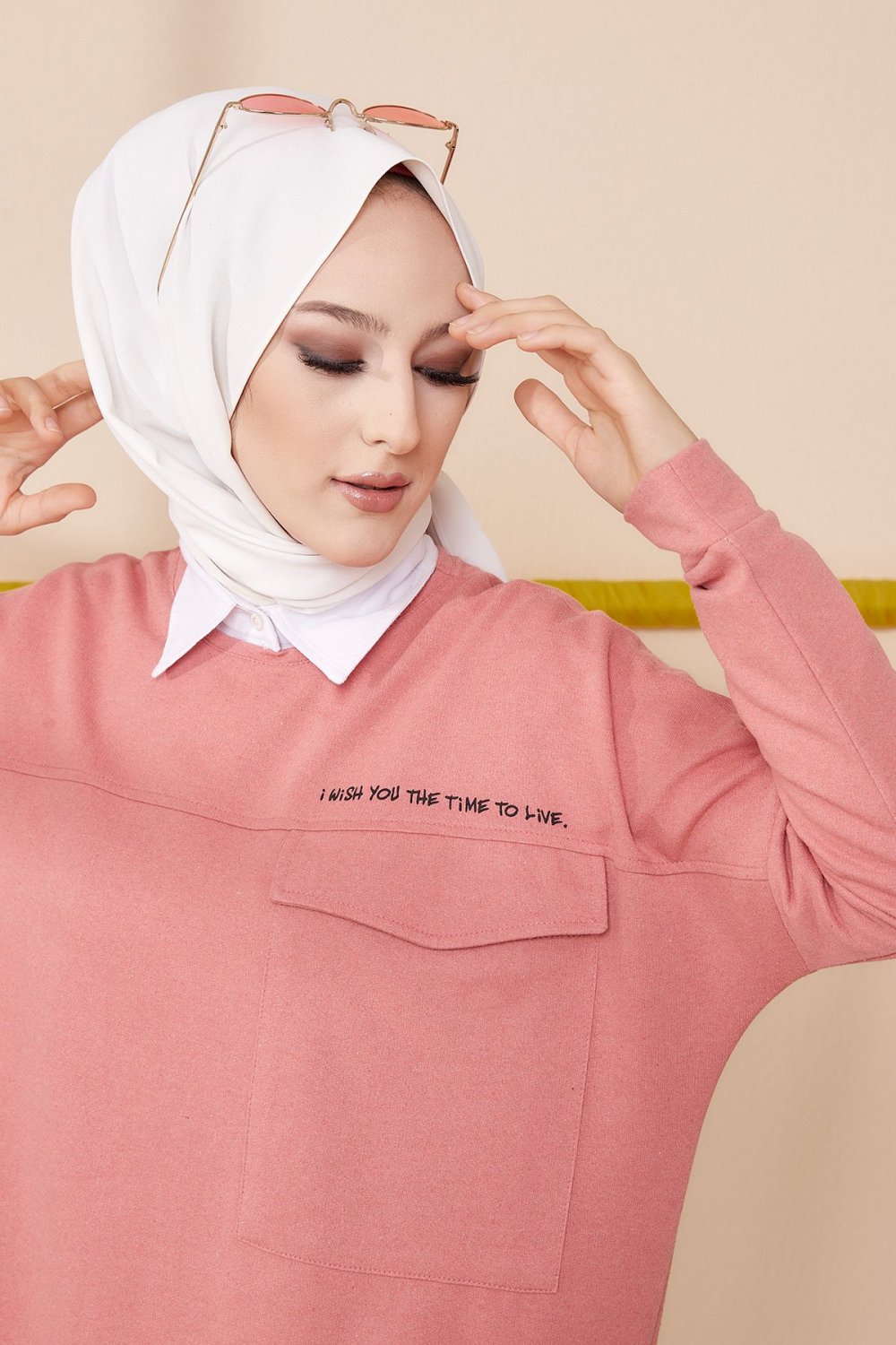 Tunique decontractee ample avec grande poche (Sweat femme Hijab) - Couleur rose