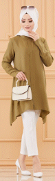 Tunique qui arrive aux genoux avec 5 plis. Lavage à la machine.